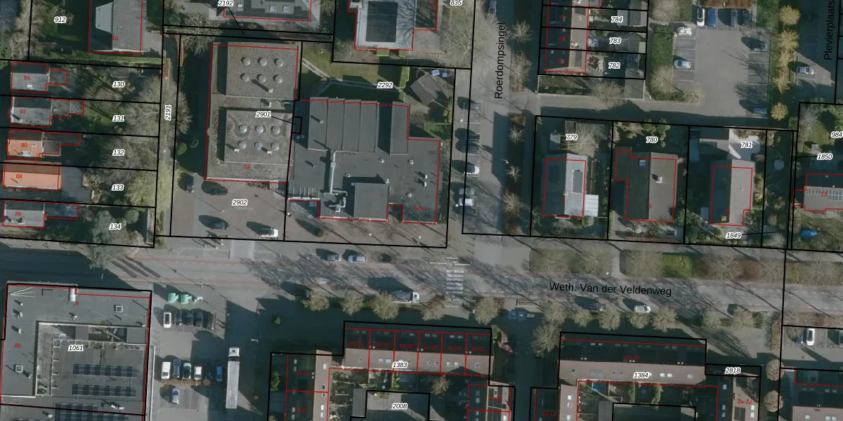 Weth. Van der Veldenweg 5-b is gelegen op kadastraal perceel NMD00F2292. Deze kadastrale aanduiding is uniek en wordt gebruikt door het Kadaster om eigendomsrechten en andere zakelijke rechten vast te leggen. Het perceel maakt onderdeel uit van de kadastrale gemeente Numansdorp.