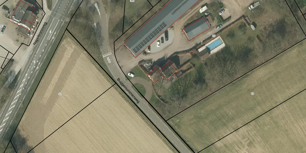 Buggenummerweg 2 is gelegen op kadastraal perceel HLN02G25. Deze kadastrale aanduiding is uniek en wordt gebruikt door het Kadaster om eigendomsrechten en andere zakelijke rechten vast te leggen. Het perceel maakt onderdeel uit van de kadastrale gemeente Haelen.