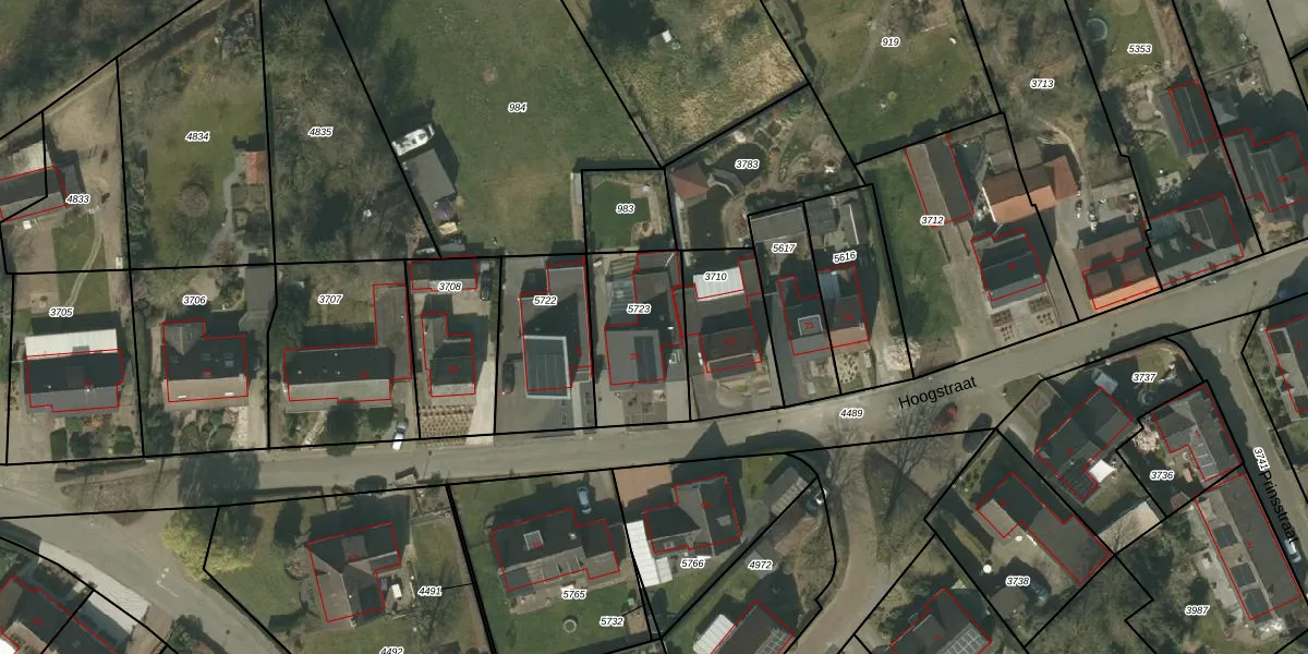 Hoogstraat 25 is gelegen op kadastraal perceel HLN02A5723. Deze kadastrale aanduiding is uniek en wordt gebruikt door het Kadaster om eigendomsrechten en andere zakelijke rechten vast te leggen. Het perceel maakt onderdeel uit van de kadastrale gemeente Haelen.