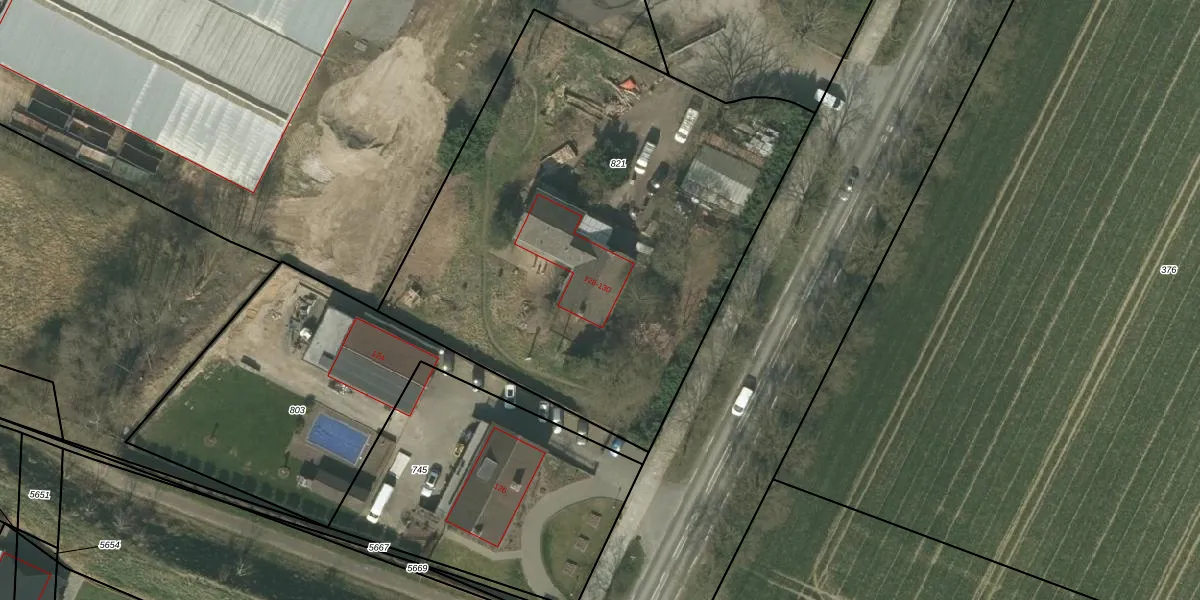 Het adres is gelegen op perceel 821 in de sectie B en de kadastrale gemeente Nunhem. De kadastrale aanduiding is aldus NHM00-B-821. De gemiddelde perceelgrootte in Nunhem is 7743,33 m². Dit perceel is kleiner: de perceeloppervlakte bedraagt 2930 m². De grootste perceeloppervlakte in de kadastrale gemeente is 14,7 ha. De kleinste oppervlakte bedraagt 3 m². Op het perceel zijn 2 adressen aanwezig. De laatste wijziging in het de Basisregistratie Kadaster (BRK) was op 01-12-2009.