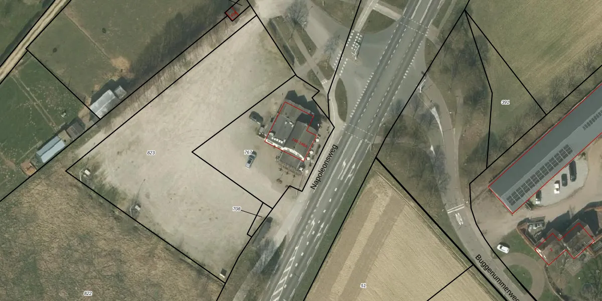 Napoleonsweg 146 is gelegen op kadastraal perceel NHM00B767. Deze kadastrale aanduiding is uniek en wordt gebruikt door het Kadaster om eigendomsrechten en andere zakelijke rechten vast te leggen. Het perceel maakt onderdeel uit van de kadastrale gemeente Nunhem.