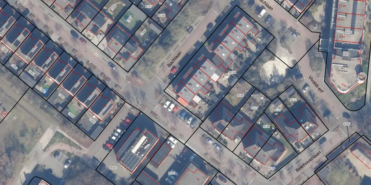 Het perceel waarop Bachlaan 67 staat heeft een oppervlakte van 1625 m². Dit is een zeer groot perceel. De perceeloppervlakte wordt geregistreerd door het Kadaster. Gedetailleerde informatie over de maten van dit perceel kunt u vinden in het rapport Kadastrale kaart met maatvoering van Bachlaan 67.