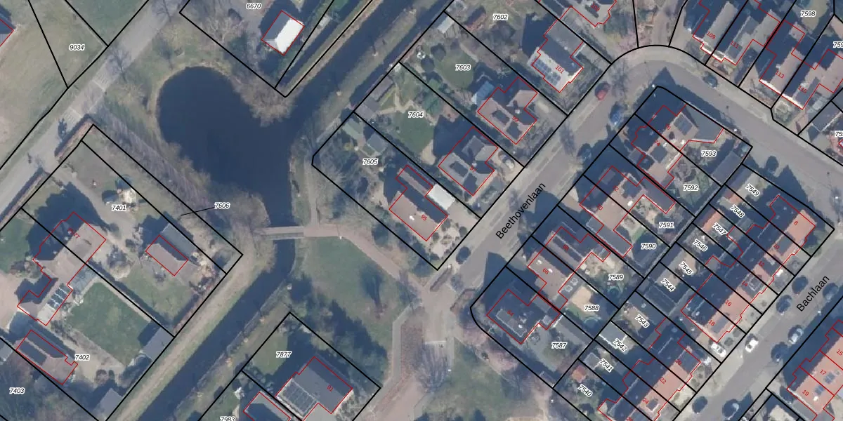 Het perceel waarop Beethovenlaan 95 staat heeft een oppervlakte van 635 m². Dit is een groot perceel. De perceeloppervlakte wordt geregistreerd door het Kadaster. Gedetailleerde informatie over de maten van dit perceel kunt u vinden in het rapport Kadastrale kaart met maatvoering van Beethovenlaan 95.