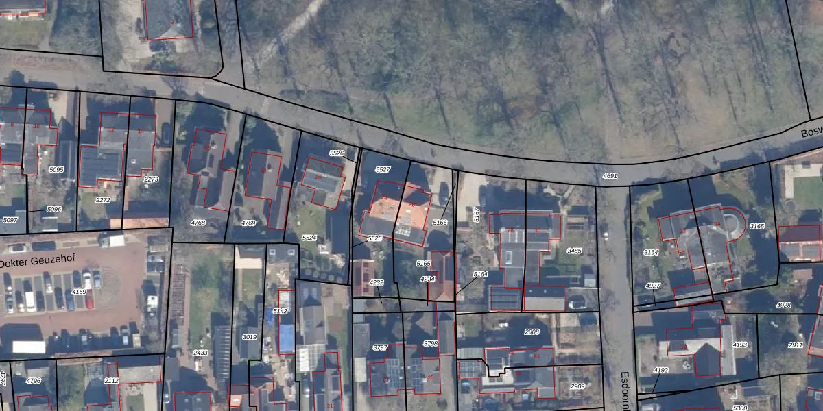Het perceel waarop Bosweg 26 staat heeft een oppervlakte van 436 m². Dit is een groot perceel. De perceeloppervlakte wordt geregistreerd door het Kadaster. Gedetailleerde informatie over de maten van dit perceel kunt u vinden in het rapport Kadastrale kaart met maatvoering van Bosweg 26.