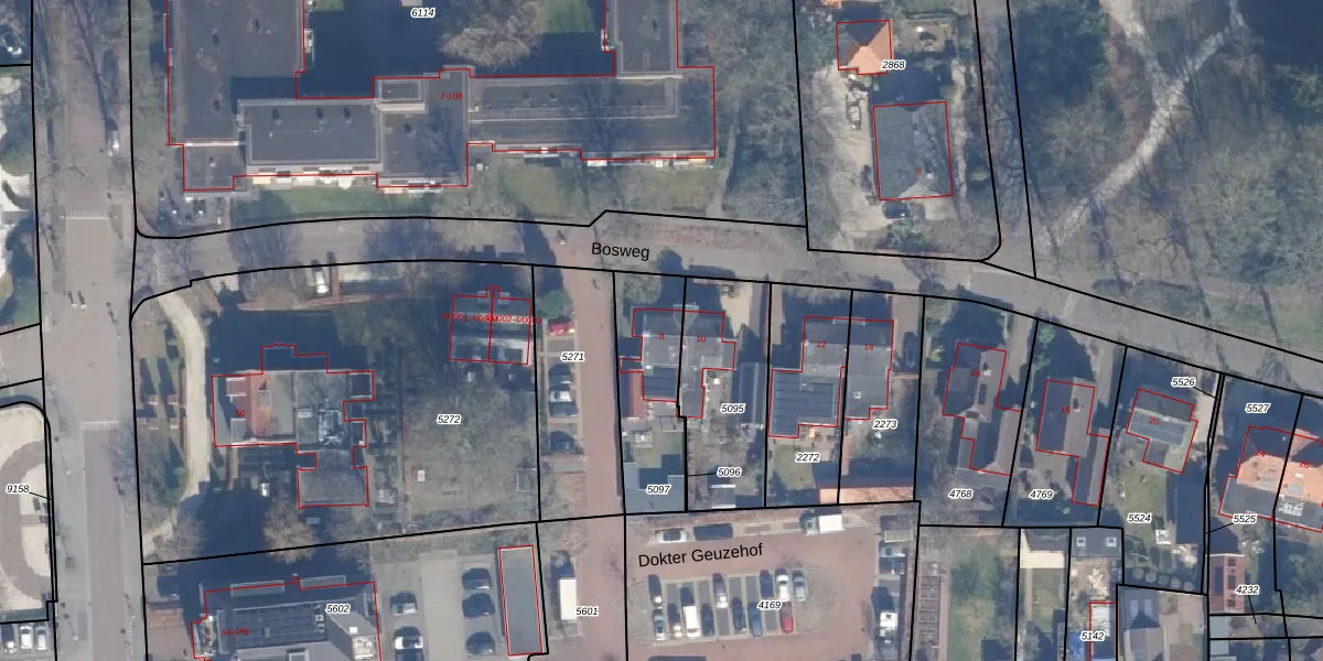 Het perceel waarop Bosweg 8 staat heeft een oppervlakte van 358 m². Dit is een groot perceel. De perceeloppervlakte wordt geregistreerd door het Kadaster. Gedetailleerde informatie over de maten van dit perceel kunt u vinden in het rapport Kadastrale kaart met maatvoering van Bosweg 8.