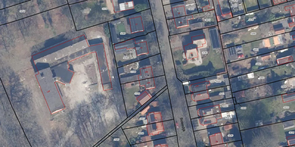 Het perceel waarop Boterdijk 13-b staat heeft een oppervlakte van 393 m². Dit is een groot perceel. De perceeloppervlakte wordt geregistreerd door het Kadaster. Gedetailleerde informatie over de maten van dit perceel kunt u vinden in het rapport Kadastrale kaart met maatvoering van Boterdijk 13-b.