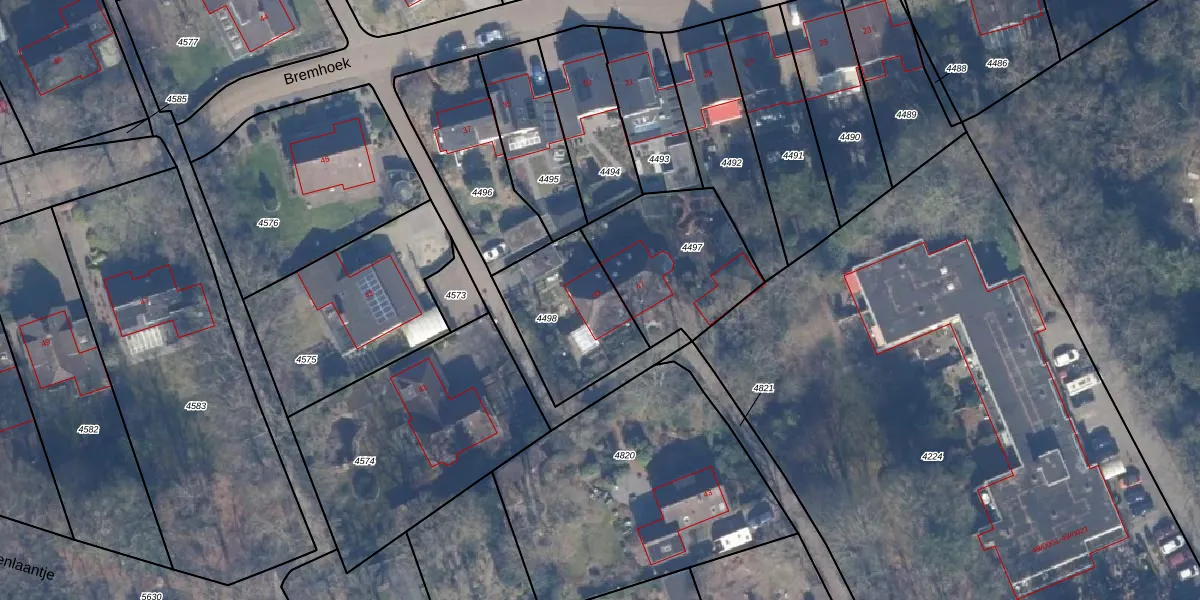 Het perceel waarop Bremhoek 39 staat heeft een oppervlakte van 420 m². Dit is een groot perceel. De perceeloppervlakte wordt geregistreerd door het Kadaster. Gedetailleerde informatie over de maten van dit perceel kunt u vinden in het rapport Kadastrale kaart met maatvoering van Bremhoek 39.