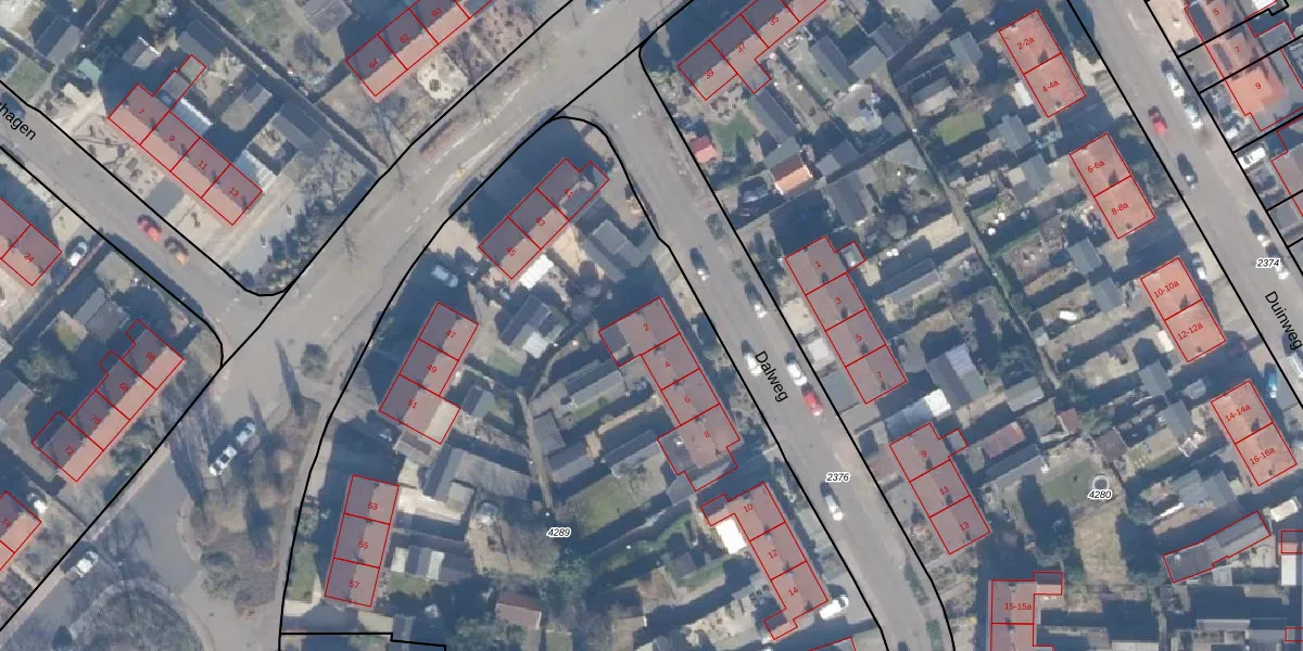 Het perceel waarop Dalweg 2 staat heeft een oppervlakte van 5837 m². Dit is een zeer groot perceel. De perceeloppervlakte wordt geregistreerd door het Kadaster. Gedetailleerde informatie over de maten van dit perceel kunt u vinden in het rapport Kadastrale kaart met maatvoering van Dalweg 2.