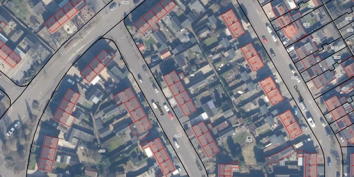 Het perceel waarop Dalweg 3 staat heeft een oppervlakte van 8864 m². Dit is een zeer groot perceel. De perceeloppervlakte wordt geregistreerd door het Kadaster. Gedetailleerde informatie over de maten van dit perceel kunt u vinden in het rapport Kadastrale kaart met maatvoering van Dalweg 3.