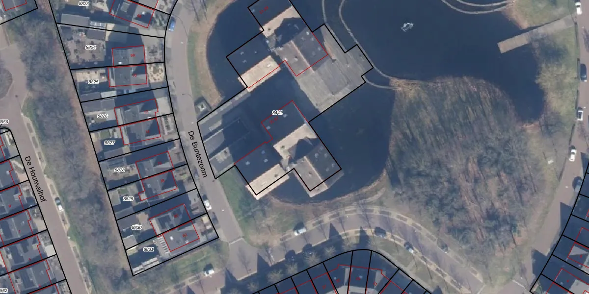 De Buntezoom 45 is gelegen op kadastraal perceel NST01B8441. Deze kadastrale aanduiding is uniek en wordt gebruikt door het Kadaster om eigendomsrechten en andere zakelijke rechten vast te leggen. Het perceel maakt onderdeel uit van de kadastrale gemeente Nunspeet.