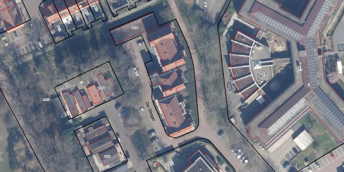Het perceel waarop De Steiger 30 staat heeft een oppervlakte van 1790 m². Dit is een zeer groot perceel. De perceeloppervlakte wordt geregistreerd door het Kadaster. Gedetailleerde informatie over de maten van dit perceel kunt u vinden in het rapport Kadastrale kaart met maatvoering van De Steiger 30.