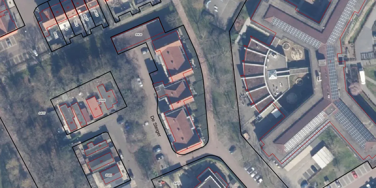 Het perceel waarop De Steiger 52 staat heeft een oppervlakte van 1790 m². Dit is een zeer groot perceel. De perceeloppervlakte wordt geregistreerd door het Kadaster. Gedetailleerde informatie over de maten van dit perceel kunt u vinden in het rapport Kadastrale kaart met maatvoering van De Steiger 52.