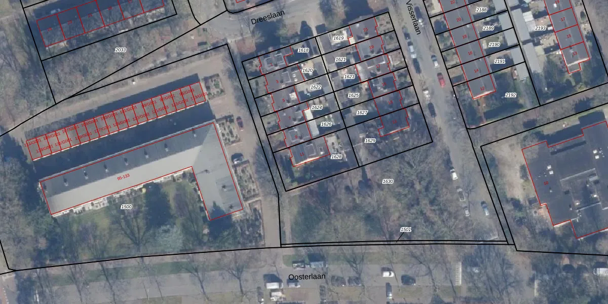Gebruik de zoekbalk of klik op een perceel voor informatie over de adressen binnen dit perceel.