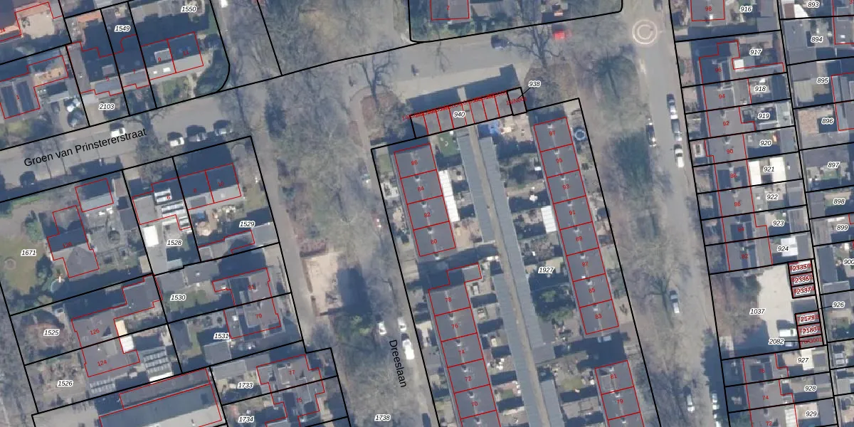 Het perceel waarop Dreeslaan 82 staat heeft een oppervlakte van 4288 m². Dit is een zeer groot perceel. De perceeloppervlakte wordt geregistreerd door het Kadaster. Gedetailleerde informatie over de maten van dit perceel kunt u vinden in het rapport Kadastrale kaart met maatvoering van Dreeslaan 82.