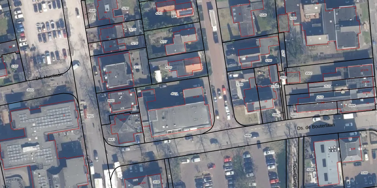 Het perceel waarop Ds. de Bouterlaan 14-e staat heeft een oppervlakte van 1150 m². Dit is een zeer groot perceel. De perceeloppervlakte wordt geregistreerd door het Kadaster. Gedetailleerde informatie over de maten van dit perceel kunt u vinden in het rapport Kadastrale kaart met maatvoering van Ds. de Bouterlaan 14-e.