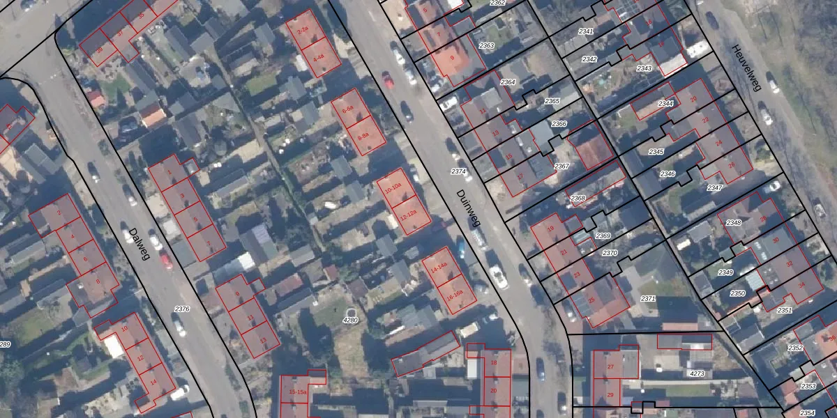 Het perceel waarop Duinweg 12 staat heeft een oppervlakte van 8864 m². Dit is een zeer groot perceel. De perceeloppervlakte wordt geregistreerd door het Kadaster. Gedetailleerde informatie over de maten van dit perceel kunt u vinden in het rapport Kadastrale kaart met maatvoering van Duinweg 12.