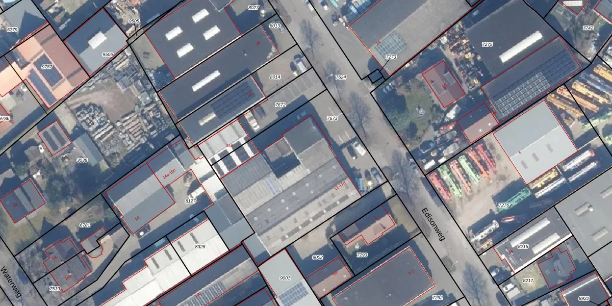 Het perceel waarop Edisonweg 11-a staat heeft een oppervlakte van 1695 m². Dit is een zeer groot perceel. De perceeloppervlakte wordt geregistreerd door het Kadaster. Gedetailleerde informatie over de maten van dit perceel kunt u vinden in het rapport Kadastrale kaart met maatvoering van Edisonweg 11-a.
