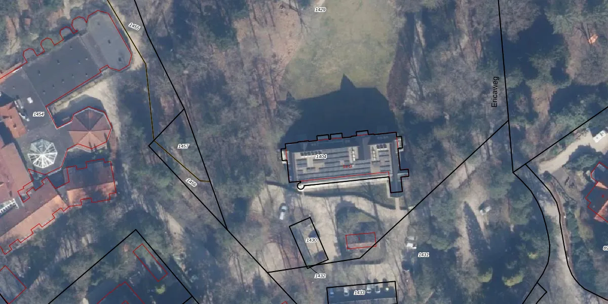 Het perceel waarop Ericaweg 1-r staat heeft een oppervlakte van 595 m². Dit is een groot perceel. De perceeloppervlakte wordt geregistreerd door het Kadaster. Gedetailleerde informatie over de maten van dit perceel kunt u vinden in het rapport Kadastrale kaart met maatvoering van Ericaweg 1-r.
