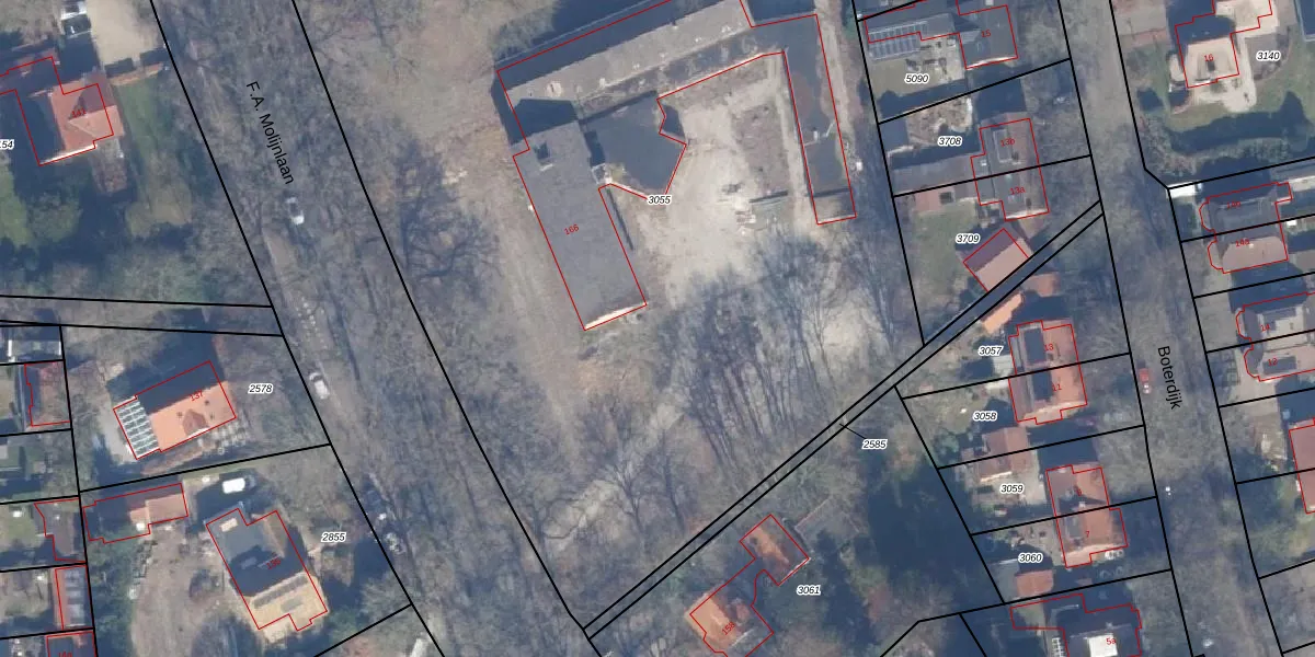 Het perceel waarop F.A. Molijnlaan 160-0005 staat heeft een oppervlakte van 7100 m². Dit is een zeer groot perceel. De perceeloppervlakte wordt geregistreerd door het Kadaster. Gedetailleerde informatie over de maten van dit perceel kunt u vinden in het rapport Kadastrale kaart met maatvoering van F.A. Molijnlaan 160-0005.