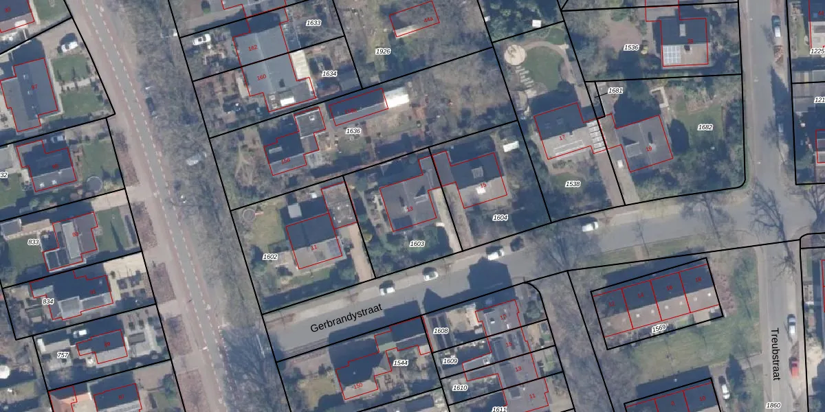 Gebruik de zoekbalk of klik op een perceel voor informatie over de adressen binnen dit perceel.
