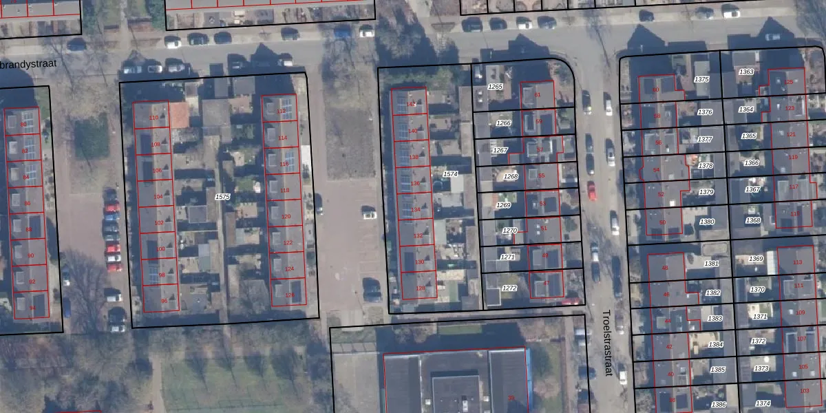 Het perceel waarop Gerbrandystraat 134 staat heeft een oppervlakte van 1355 m². Dit is een zeer groot perceel. De perceeloppervlakte wordt geregistreerd door het Kadaster. Gedetailleerde informatie over de maten van dit perceel kunt u vinden in het rapport Kadastrale kaart met maatvoering van Gerbrandystraat 134.