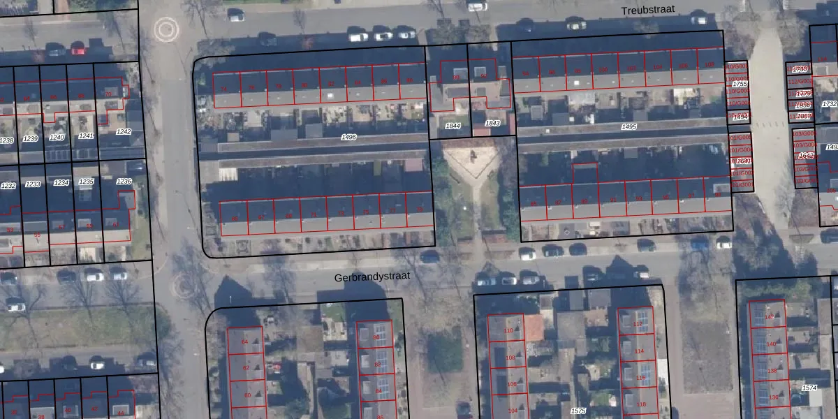 Het perceel waarop Gerbrandystraat 79 staat heeft een oppervlakte van 2672 m². Dit is een zeer groot perceel. De perceeloppervlakte wordt geregistreerd door het Kadaster. Gedetailleerde informatie over de maten van dit perceel kunt u vinden in het rapport Kadastrale kaart met maatvoering van Gerbrandystraat 79.