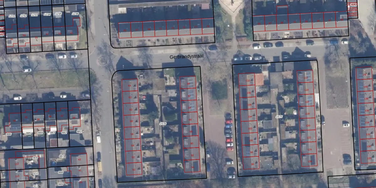 Het perceel waarop Gerbrandystraat 82 staat heeft een oppervlakte van 2810 m². Dit is een zeer groot perceel. De perceeloppervlakte wordt geregistreerd door het Kadaster. Gedetailleerde informatie over de maten van dit perceel kunt u vinden in het rapport Kadastrale kaart met maatvoering van Gerbrandystraat 82.