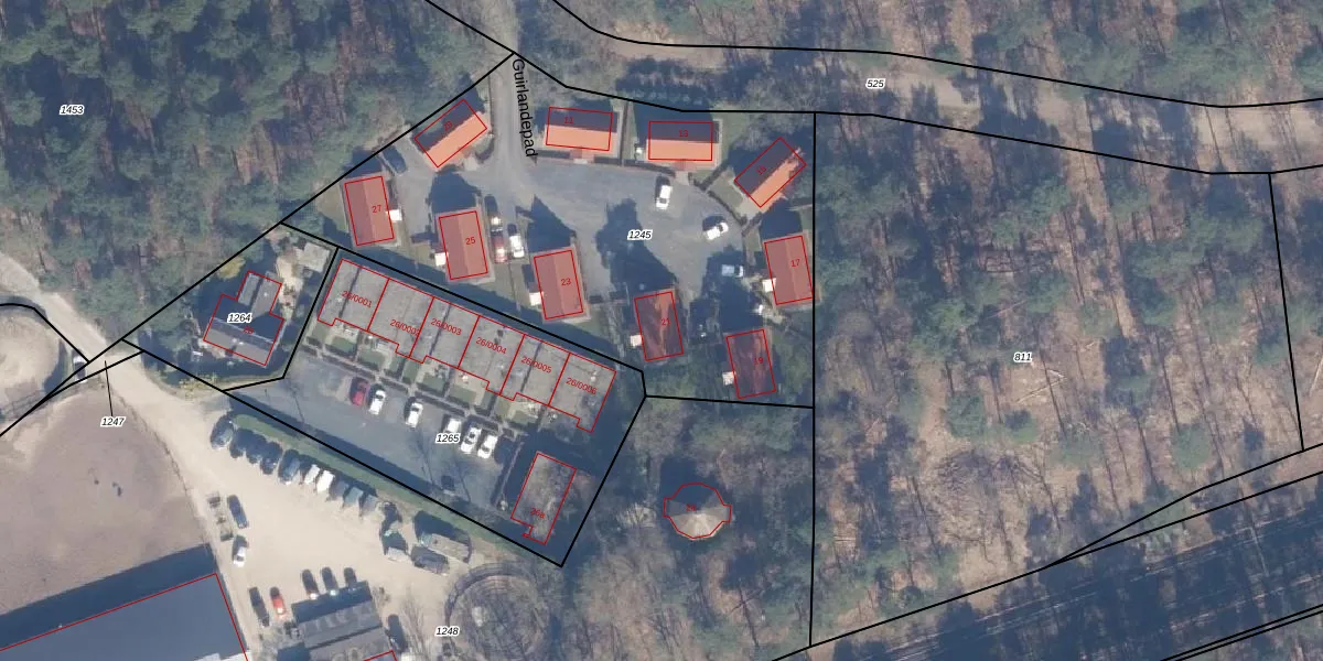 Het perceel waarop Guirlandepad 21 staat heeft een oppervlakte van 2625 m². Dit is een zeer groot perceel. De perceeloppervlakte wordt geregistreerd door het Kadaster. Gedetailleerde informatie over de maten van dit perceel kunt u vinden in het rapport Kadastrale kaart met maatvoering van Guirlandepad 21.