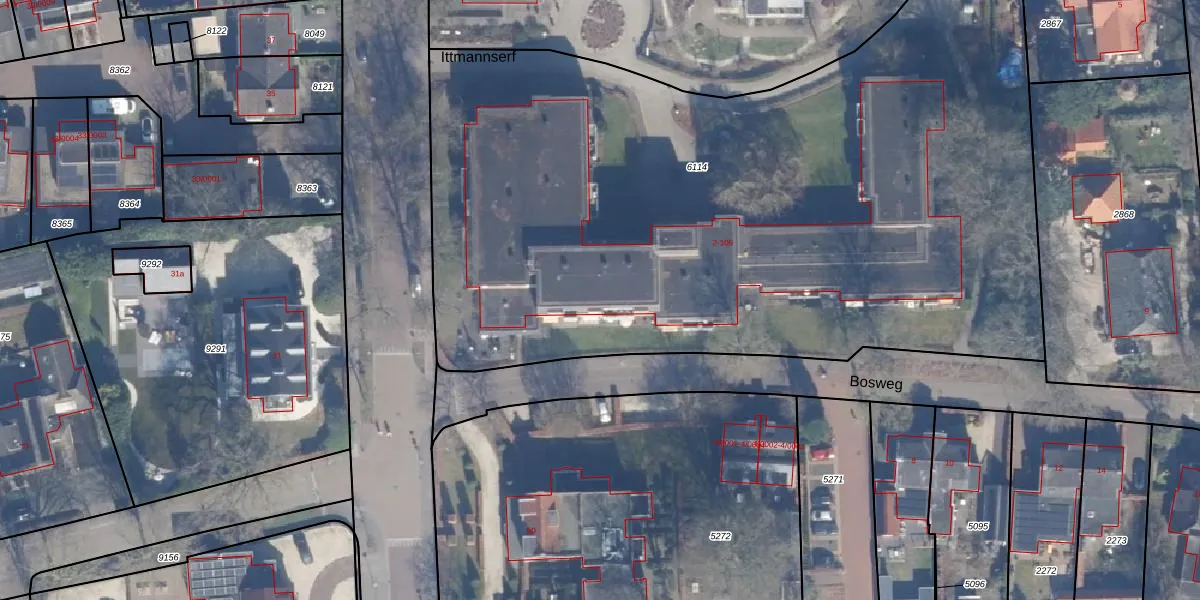 Het perceel waarop Ittmannserf 16 staat heeft een oppervlakte van 5192 m². Dit is een zeer groot perceel. De perceeloppervlakte wordt geregistreerd door het Kadaster. Gedetailleerde informatie over de maten van dit perceel kunt u vinden in het rapport Kadastrale kaart met maatvoering van Ittmannserf 16.