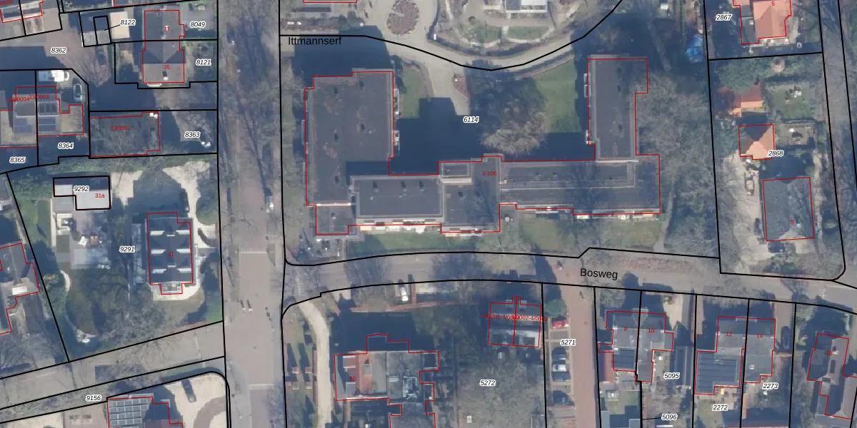 Het perceel waarop Ittmannserf 18 staat heeft een oppervlakte van 5192 m². Dit is een zeer groot perceel. De perceeloppervlakte wordt geregistreerd door het Kadaster. Gedetailleerde informatie over de maten van dit perceel kunt u vinden in het rapport Kadastrale kaart met maatvoering van Ittmannserf 18.