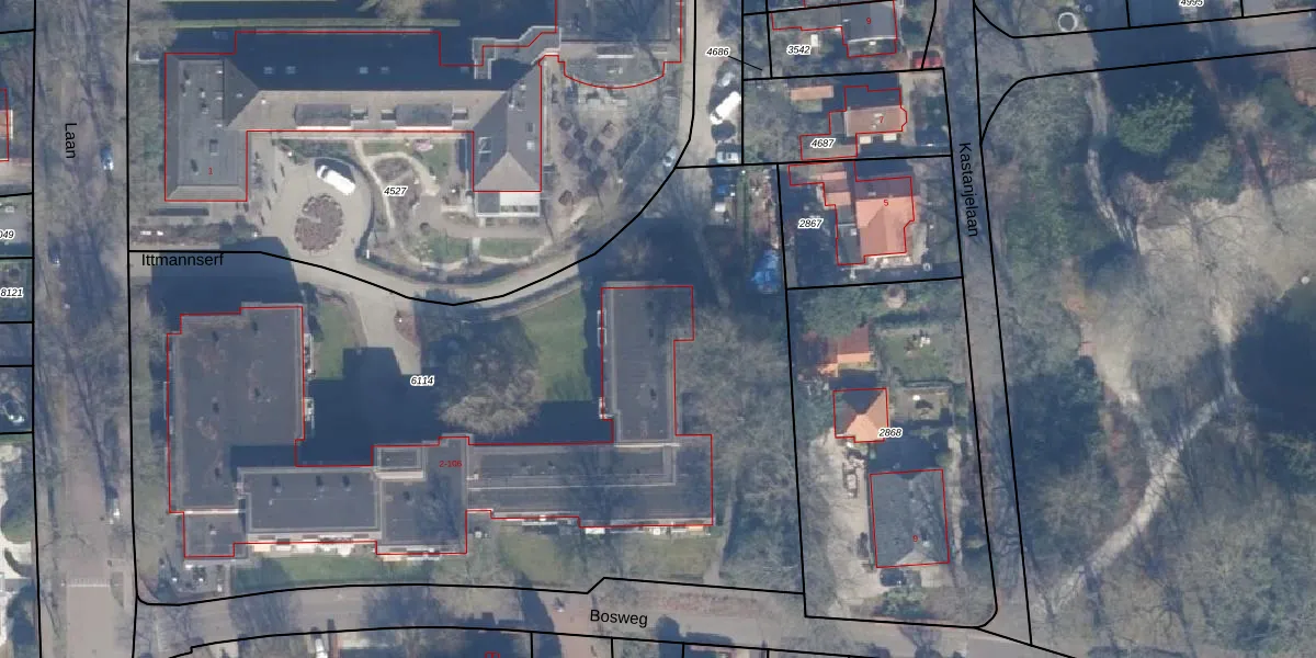 Het perceel waarop Ittmannserf 38 staat heeft een oppervlakte van 5192 m². Dit is een zeer groot perceel. De perceeloppervlakte wordt geregistreerd door het Kadaster. Gedetailleerde informatie over de maten van dit perceel kunt u vinden in het rapport Kadastrale kaart met maatvoering van Ittmannserf 38.