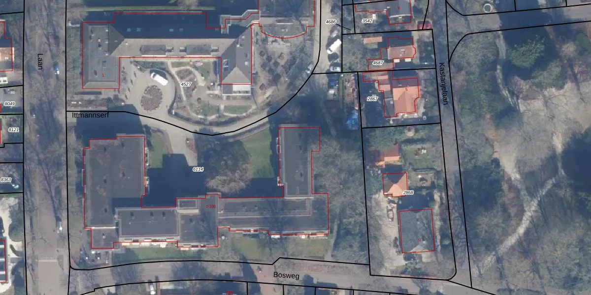 Het perceel waarop Ittmannserf 74 staat heeft een oppervlakte van 5192 m². Dit is een zeer groot perceel. De perceeloppervlakte wordt geregistreerd door het Kadaster. Gedetailleerde informatie over de maten van dit perceel kunt u vinden in het rapport Kadastrale kaart met maatvoering van Ittmannserf 74.