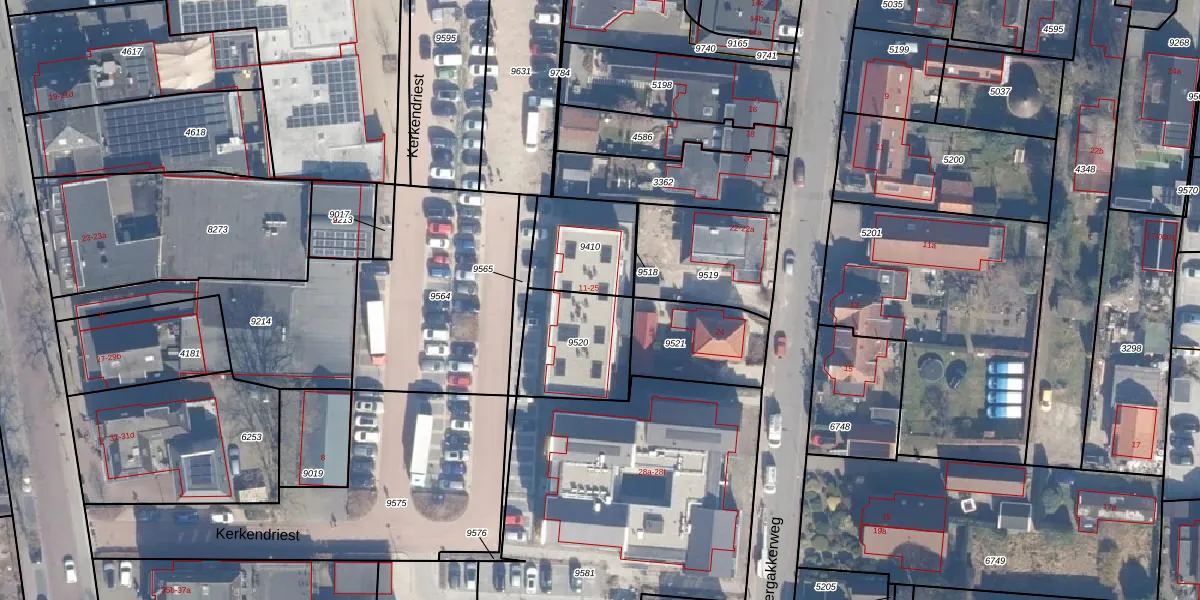 Kerkendriest 21 is gelegen op kadastraal perceel NST01B9520. Deze kadastrale aanduiding is uniek en wordt gebruikt door het Kadaster om eigendomsrechten en andere zakelijke rechten vast te leggen. Het perceel maakt onderdeel uit van de kadastrale gemeente Nunspeet.