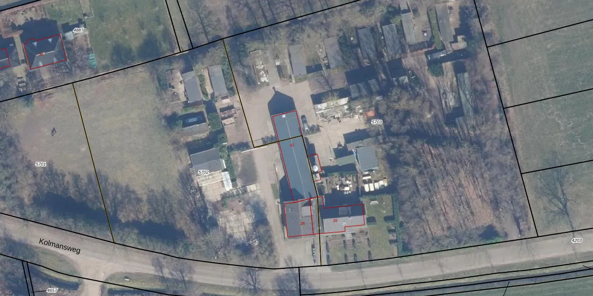 Het perceel waarop Kolmansweg 32 staat heeft een oppervlakte van 4317 m². Dit is een zeer groot perceel. De perceeloppervlakte wordt geregistreerd door het Kadaster. Gedetailleerde informatie over de maten van dit perceel kunt u vinden in het rapport Kadastrale kaart met maatvoering van Kolmansweg 32.