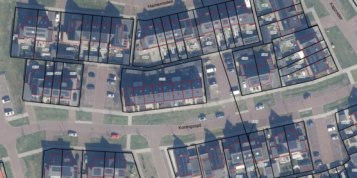 Het perceel waarop Koningsspil 19 staat heeft een oppervlakte van 1090 m². Dit is een zeer groot perceel. De perceeloppervlakte wordt geregistreerd door het Kadaster. Gedetailleerde informatie over de maten van dit perceel kunt u vinden in het rapport Kadastrale kaart met maatvoering van Koningsspil 19.