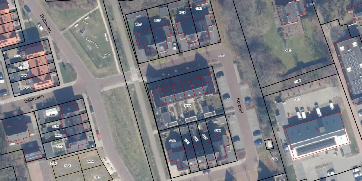 Het perceel waarop Korbeel 17 staat heeft een oppervlakte van 1020 m². Dit is een zeer groot perceel. De perceeloppervlakte wordt geregistreerd door het Kadaster. Gedetailleerde informatie over de maten van dit perceel kunt u vinden in het rapport Kadastrale kaart met maatvoering van Korbeel 17.