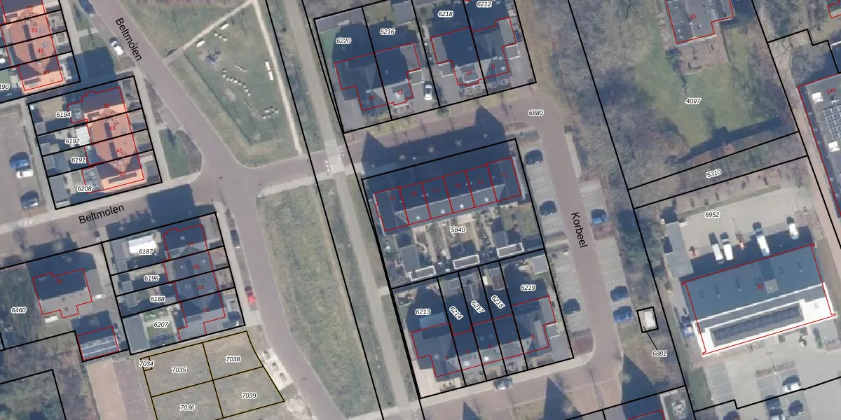 Het perceel waarop Korbeel 19 staat heeft een oppervlakte van 1020 m². Dit is een zeer groot perceel. De perceeloppervlakte wordt geregistreerd door het Kadaster. Gedetailleerde informatie over de maten van dit perceel kunt u vinden in het rapport Kadastrale kaart met maatvoering van Korbeel 19.