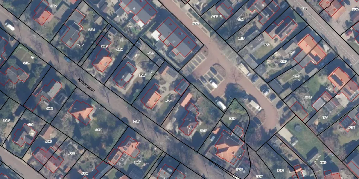 Het perceel waarop Kroonlaan 6-a staat heeft een oppervlakte van 600 m². Dit is een groot perceel. De perceeloppervlakte wordt geregistreerd door het Kadaster. Gedetailleerde informatie over de maten van dit perceel kunt u vinden in het rapport Kadastrale kaart met maatvoering van Kroonlaan 6-a.