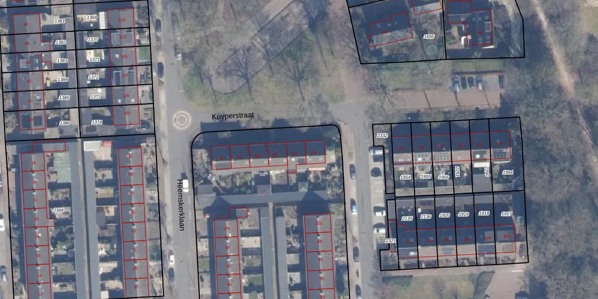 Het perceel waarop Kuyperstraat 105 staat heeft een oppervlakte van 6272 m². Dit is een zeer groot perceel. De perceeloppervlakte wordt geregistreerd door het Kadaster. Gedetailleerde informatie over de maten van dit perceel kunt u vinden in het rapport Kadastrale kaart met maatvoering van Kuyperstraat 105.