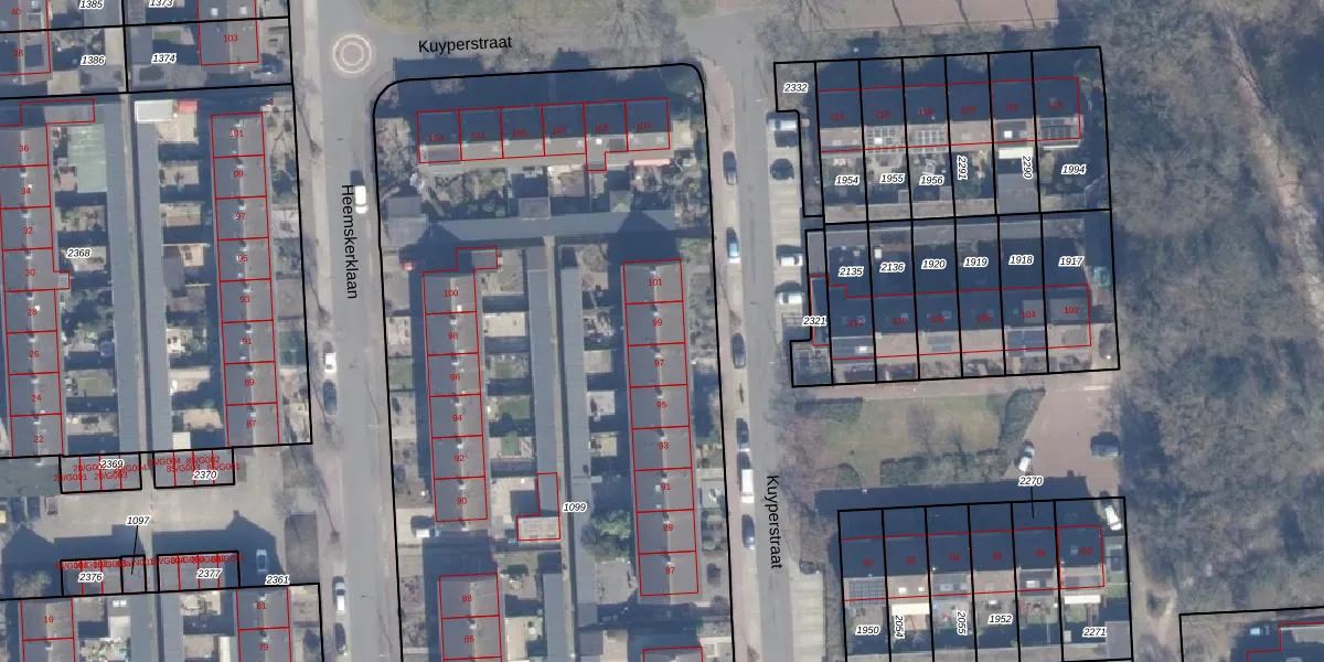 Het perceel waarop Kuyperstraat 99 staat heeft een oppervlakte van 6272 m². Dit is een zeer groot perceel. De perceeloppervlakte wordt geregistreerd door het Kadaster. Gedetailleerde informatie over de maten van dit perceel kunt u vinden in het rapport Kadastrale kaart met maatvoering van Kuyperstraat 99.