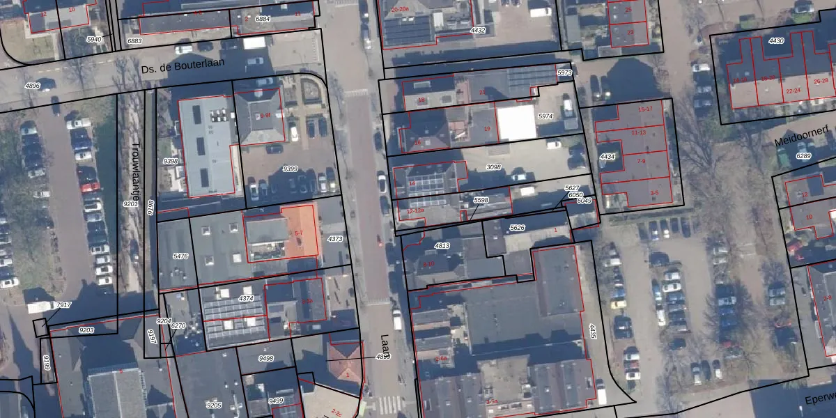 Het perceel waarop Laan 12 staat heeft een oppervlakte van 332 m². Dit is een groot perceel. De perceeloppervlakte wordt geregistreerd door het Kadaster. Gedetailleerde informatie over de maten van dit perceel kunt u vinden in het rapport Kadastrale kaart met maatvoering van Laan 12.