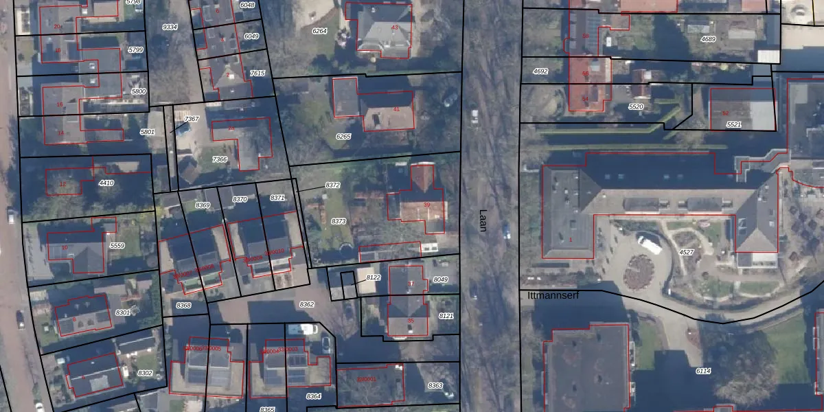 Het perceel waarop Laan 39 staat heeft een oppervlakte van 958 m². Dit is een groot perceel. De perceeloppervlakte wordt geregistreerd door het Kadaster. Gedetailleerde informatie over de maten van dit perceel kunt u vinden in het rapport Kadastrale kaart met maatvoering van Laan 39.