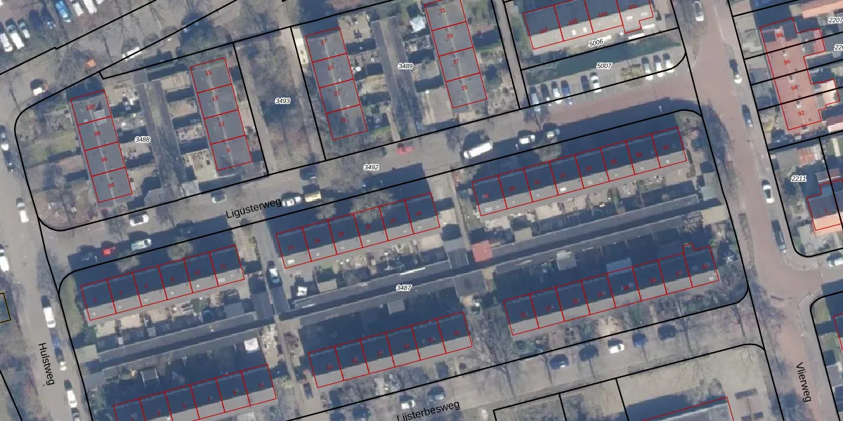 Het perceel waarop Ligusterweg 24 staat heeft een oppervlakte van 7550 m². Dit is een zeer groot perceel. De perceeloppervlakte wordt geregistreerd door het Kadaster. Gedetailleerde informatie over de maten van dit perceel kunt u vinden in het rapport Kadastrale kaart met maatvoering van Ligusterweg 24.