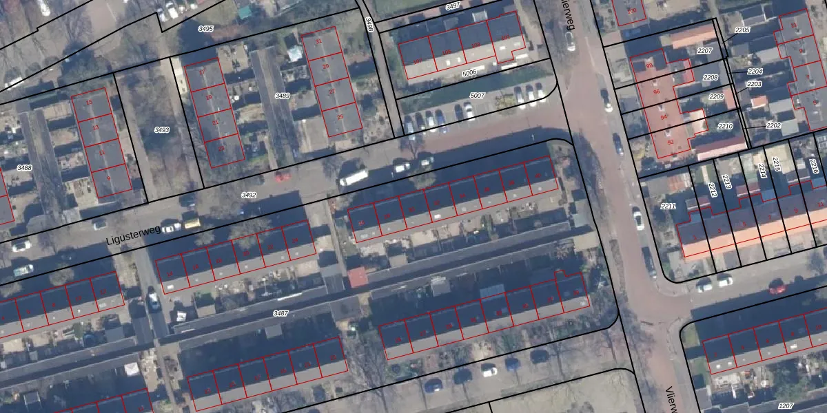 Het perceel waarop Ligusterweg 30 staat heeft een oppervlakte van 7550 m². Dit is een zeer groot perceel. De perceeloppervlakte wordt geregistreerd door het Kadaster. Gedetailleerde informatie over de maten van dit perceel kunt u vinden in het rapport Kadastrale kaart met maatvoering van Ligusterweg 30.