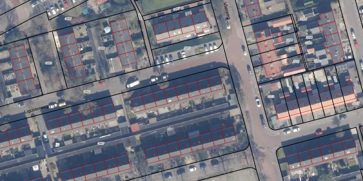 Het perceel waarop Ligusterweg 34 staat heeft een oppervlakte van 7550 m². Dit is een zeer groot perceel. De perceeloppervlakte wordt geregistreerd door het Kadaster. Gedetailleerde informatie over de maten van dit perceel kunt u vinden in het rapport Kadastrale kaart met maatvoering van Ligusterweg 34.