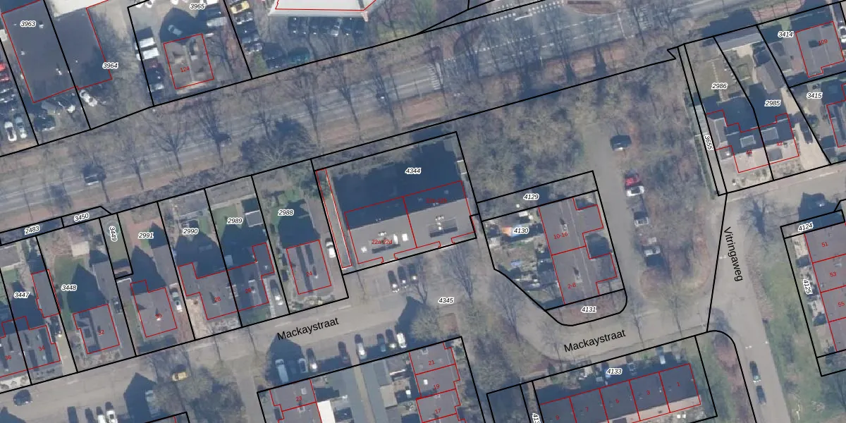 Het perceel waarop Mackaystraat 22-g staat heeft een oppervlakte van 880 m². Dit is een groot perceel. De perceeloppervlakte wordt geregistreerd door het Kadaster. Gedetailleerde informatie over de maten van dit perceel kunt u vinden in het rapport Kadastrale kaart met maatvoering van Mackaystraat 22-g.