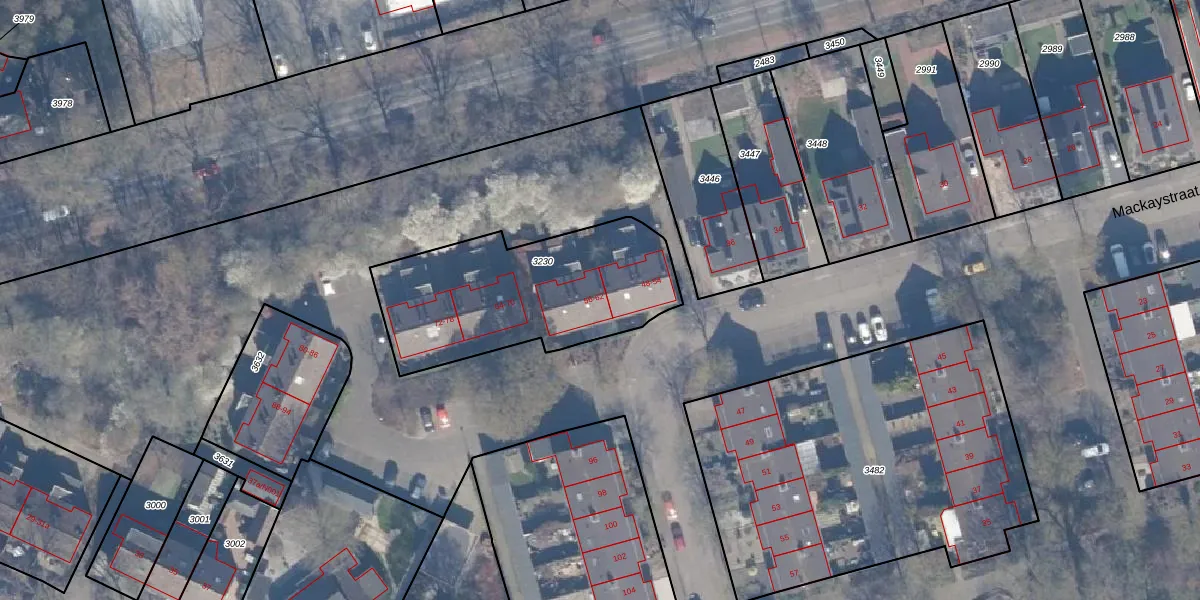 Het perceel waarop Mackaystraat 56 staat heeft een oppervlakte van 872 m². Dit is een groot perceel. De perceeloppervlakte wordt geregistreerd door het Kadaster. Gedetailleerde informatie over de maten van dit perceel kunt u vinden in het rapport Kadastrale kaart met maatvoering van Mackaystraat 56.
