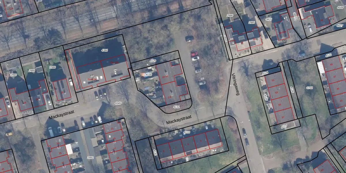 Het perceel waarop Mackaystraat 8 staat heeft een oppervlakte van 627 m². Dit is een groot perceel. De perceeloppervlakte wordt geregistreerd door het Kadaster. Gedetailleerde informatie over de maten van dit perceel kunt u vinden in het rapport Kadastrale kaart met maatvoering van Mackaystraat 8.
