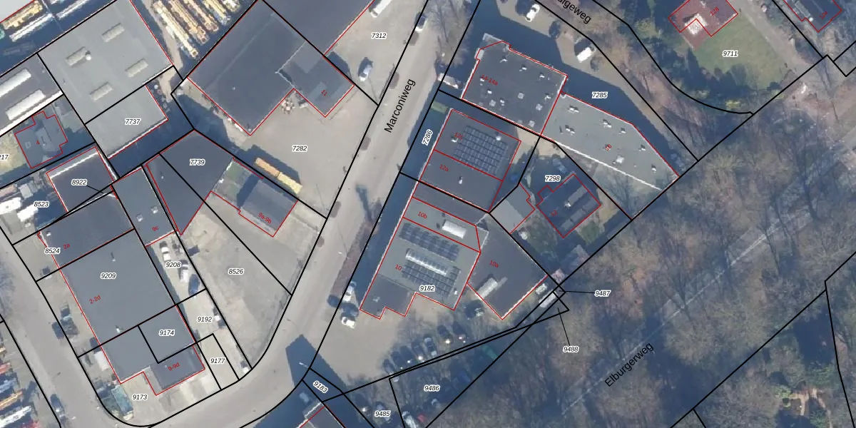 Het perceel waarop Marconiweg 10-b staat heeft een oppervlakte van 1595 m². Dit is een zeer groot perceel. De perceeloppervlakte wordt geregistreerd door het Kadaster. Gedetailleerde informatie over de maten van dit perceel kunt u vinden in het rapport Kadastrale kaart met maatvoering van Marconiweg 10-b.
