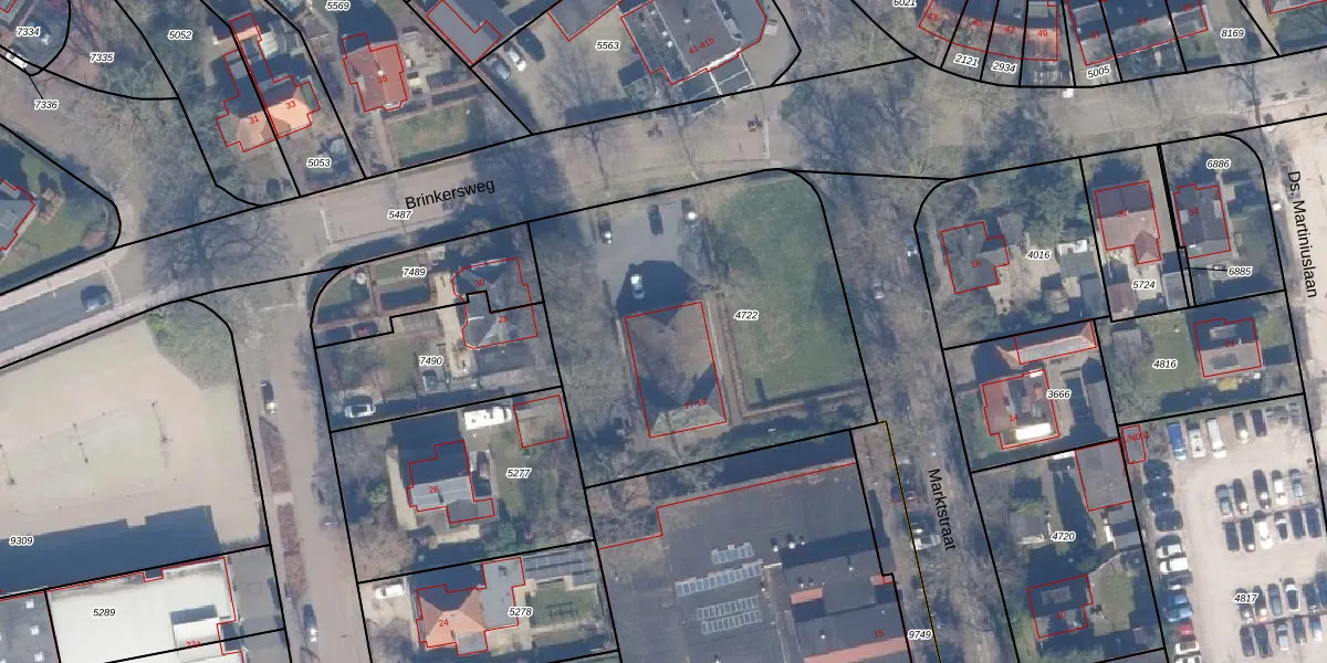 Het perceel waarop Marktstraat 19 staat heeft een oppervlakte van 1800 m². Dit is een zeer groot perceel. De perceeloppervlakte wordt geregistreerd door het Kadaster. Gedetailleerde informatie over de maten van dit perceel kunt u vinden in het rapport Kadastrale kaart met maatvoering van Marktstraat 19.